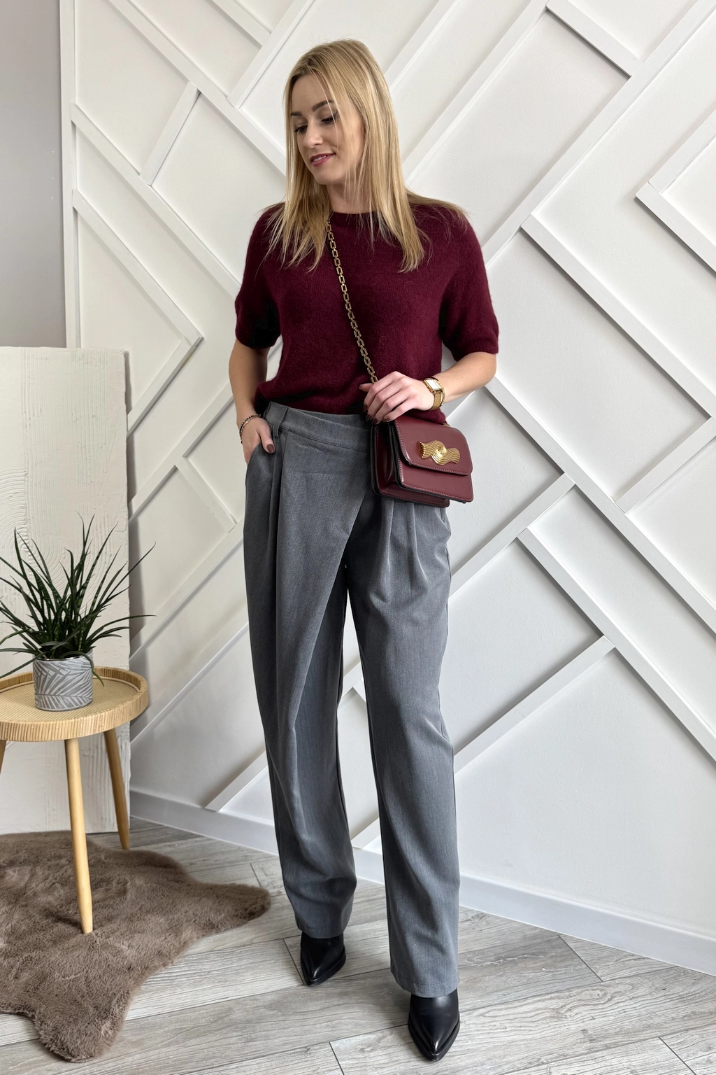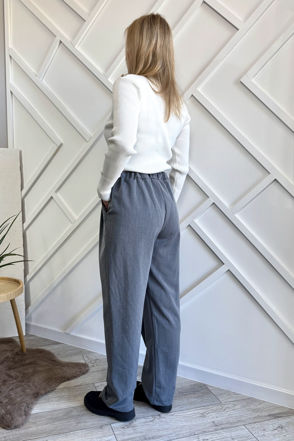Szare asymetryczne spodnie zapinane na skos to wybór, który łączy w sobie klasykę i nowoczesność. Są wygodne, stylowe i ponadczasowe – dlatego warto je mieć w swojej szafie. Ponadto łatwo je wystylizujesz na wiele okazji: do biura z koszulą, na miasto z topem, czy na spacer z T-shirtem.