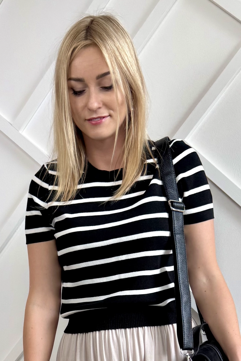 Dzianinowa bluzka w paski czarno-biała