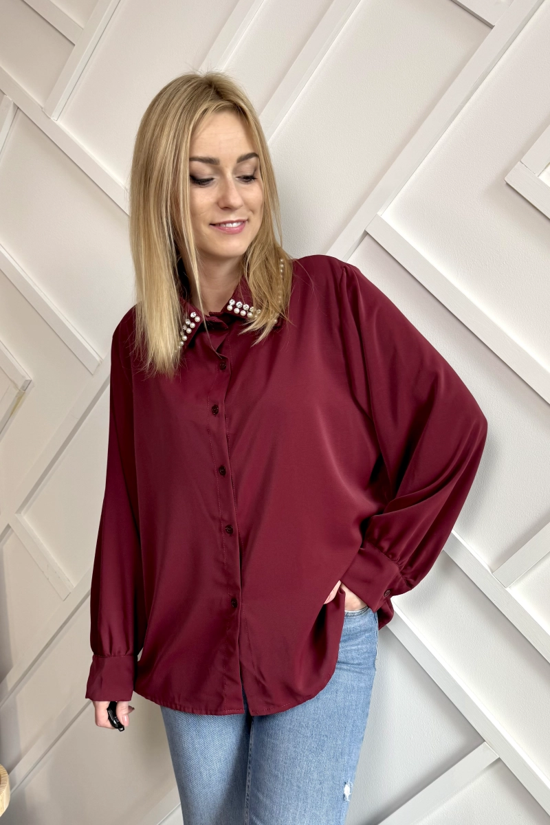 Bordowa koszula damska z cyrkoniami
