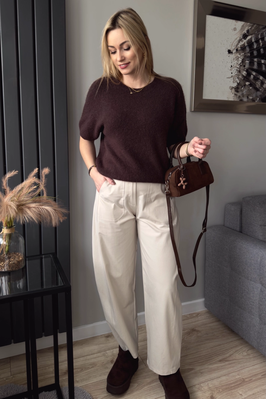Brązowy sweter z alpaki na krótki rękaw to idealny wybór dla kobiet ceniących jakość, komfort i ponadczasową elegancję. Dzięki niemu stworzysz stylizacje zarówno klasyczne, jak i casualowe.