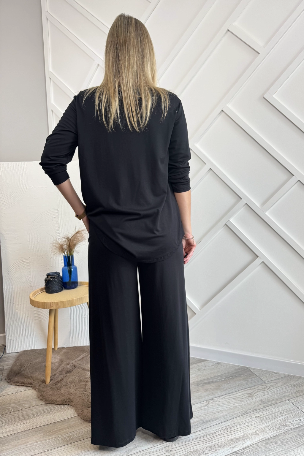 Czarny komplet damski z szerokimi spodniami