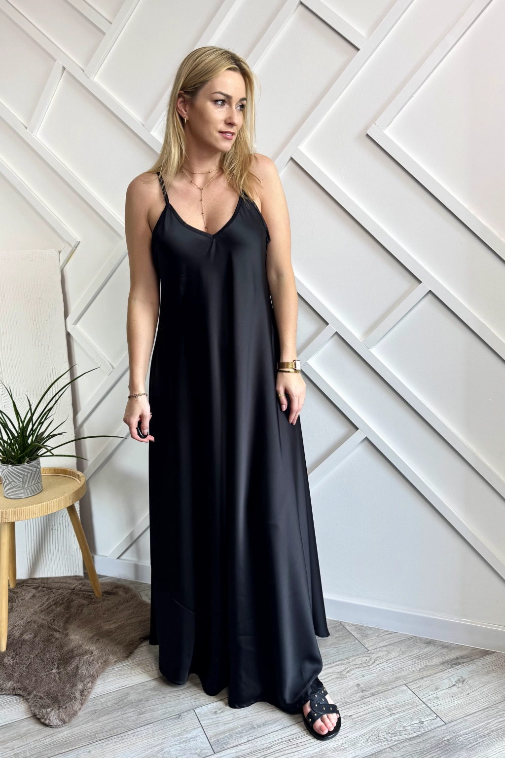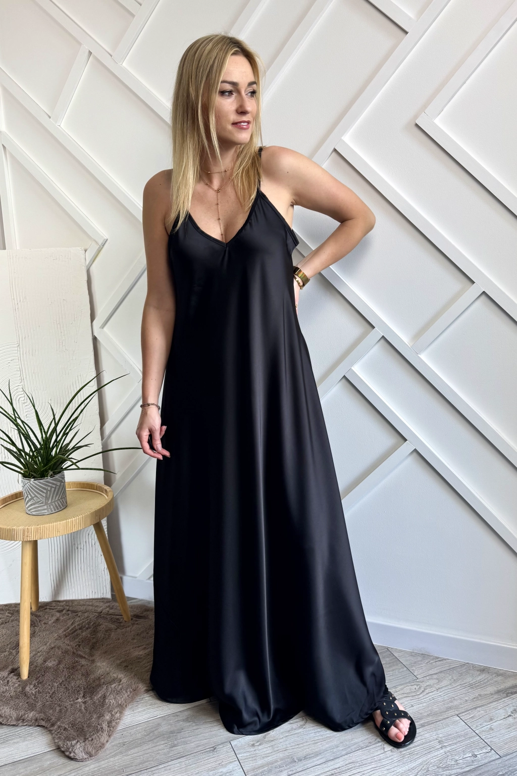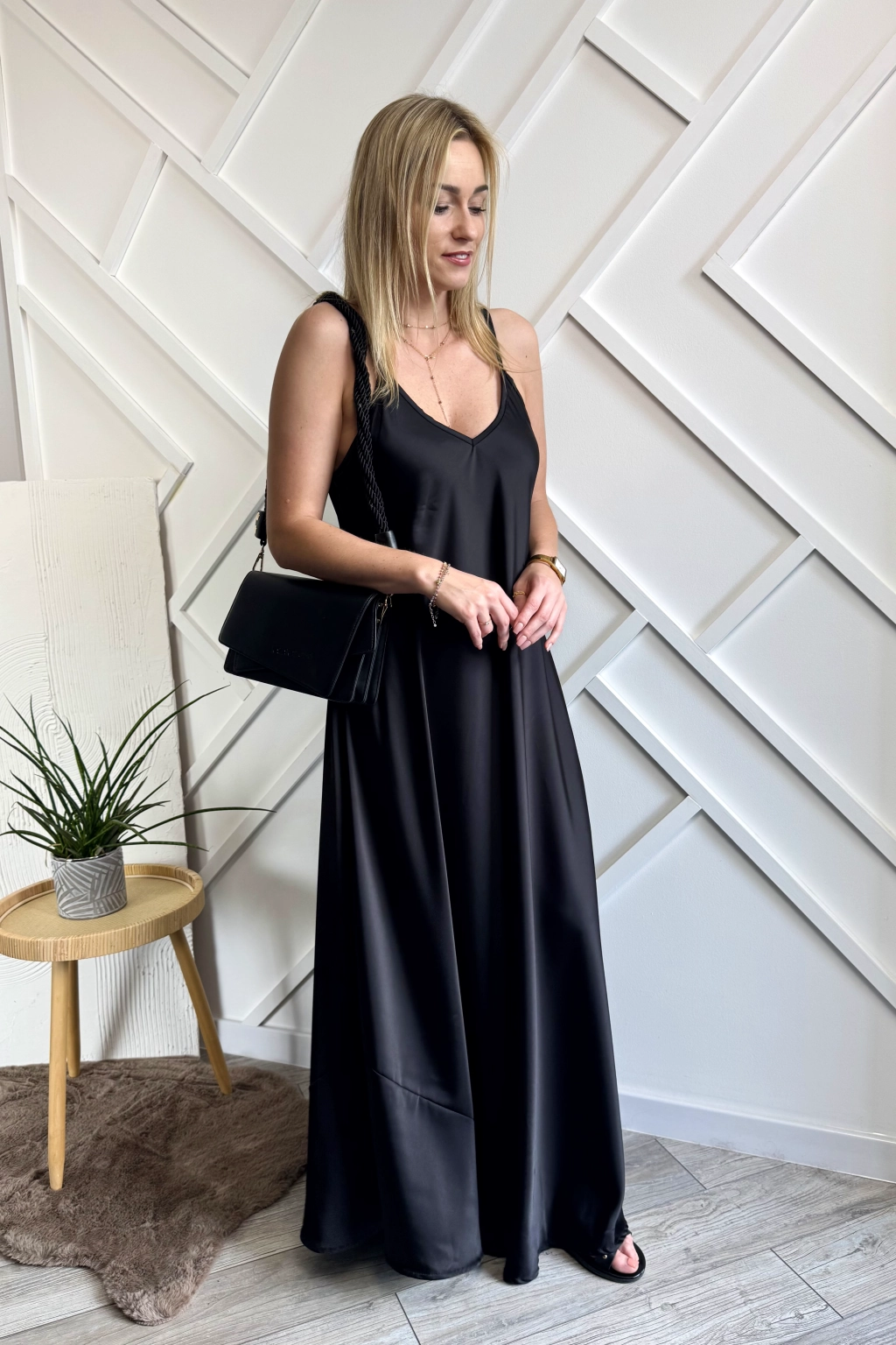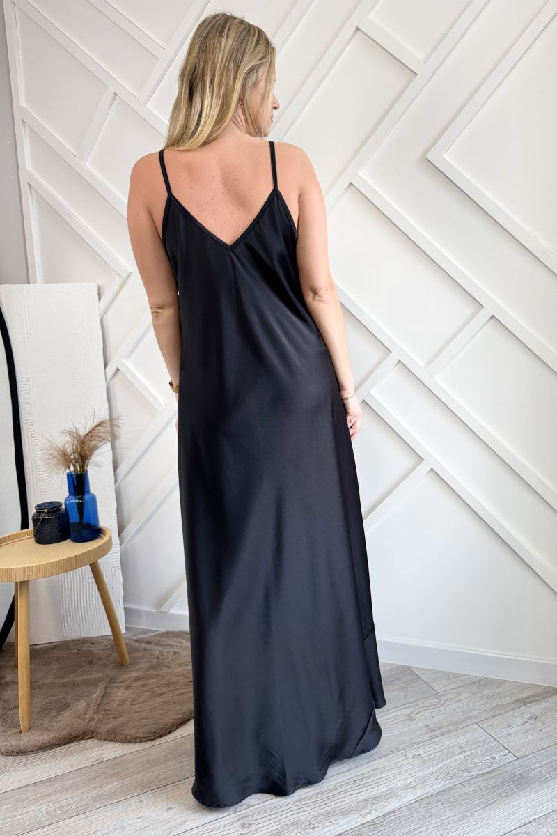 Długa satynowa sukienka czarna