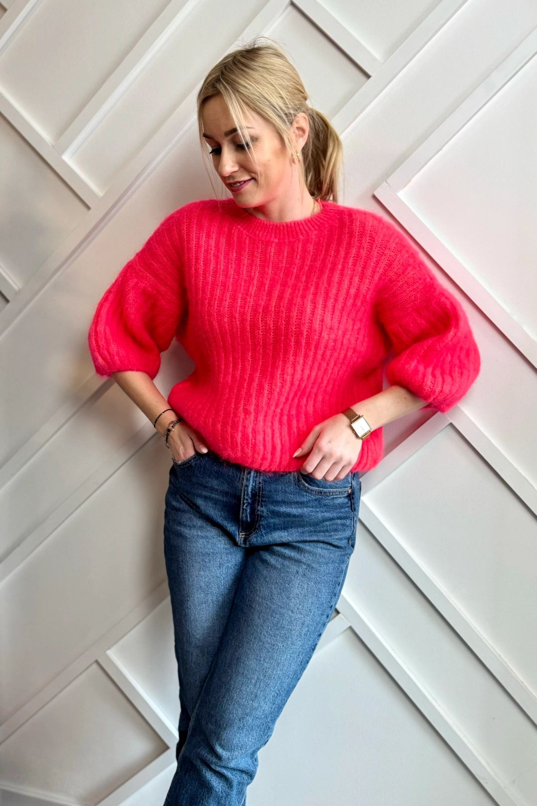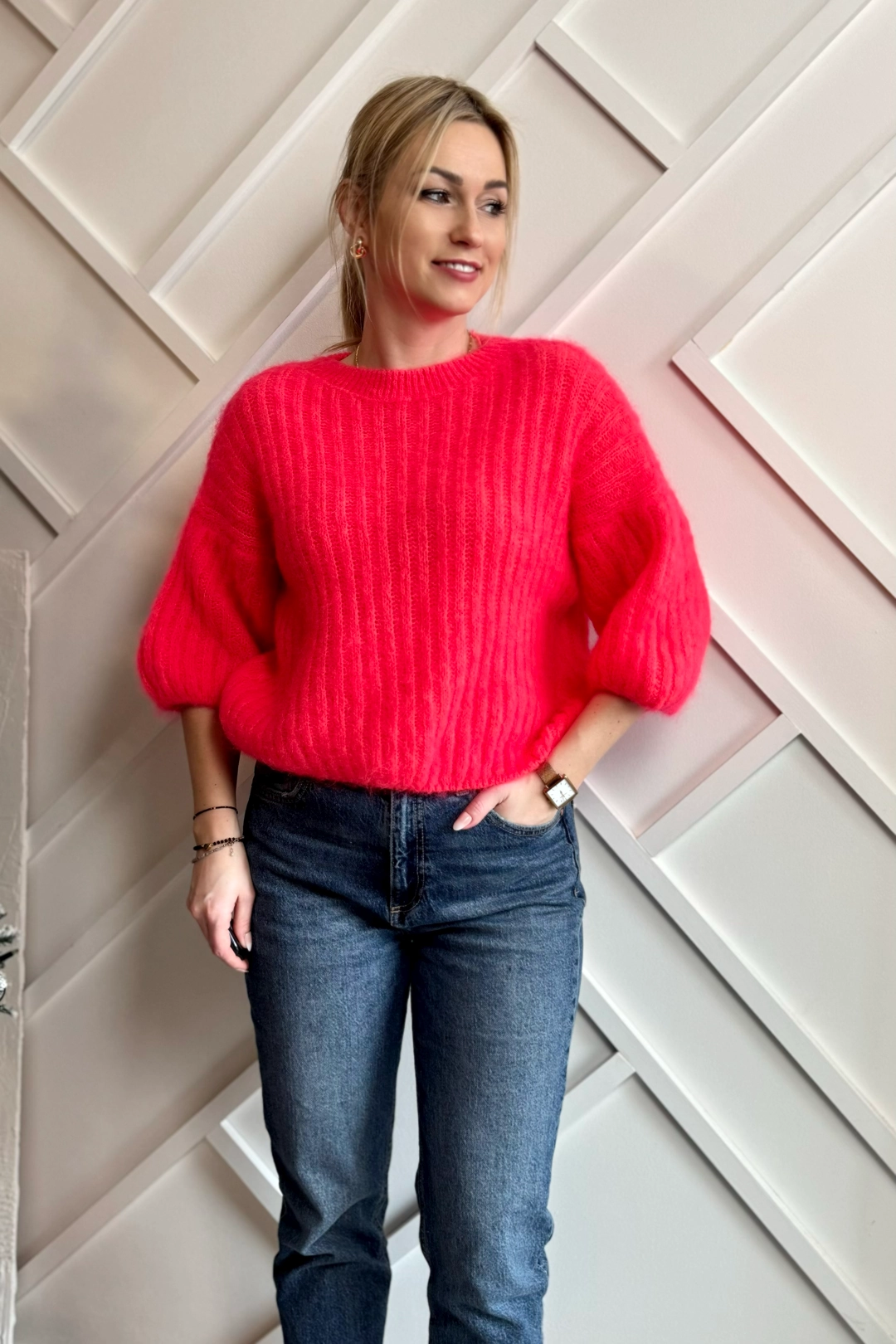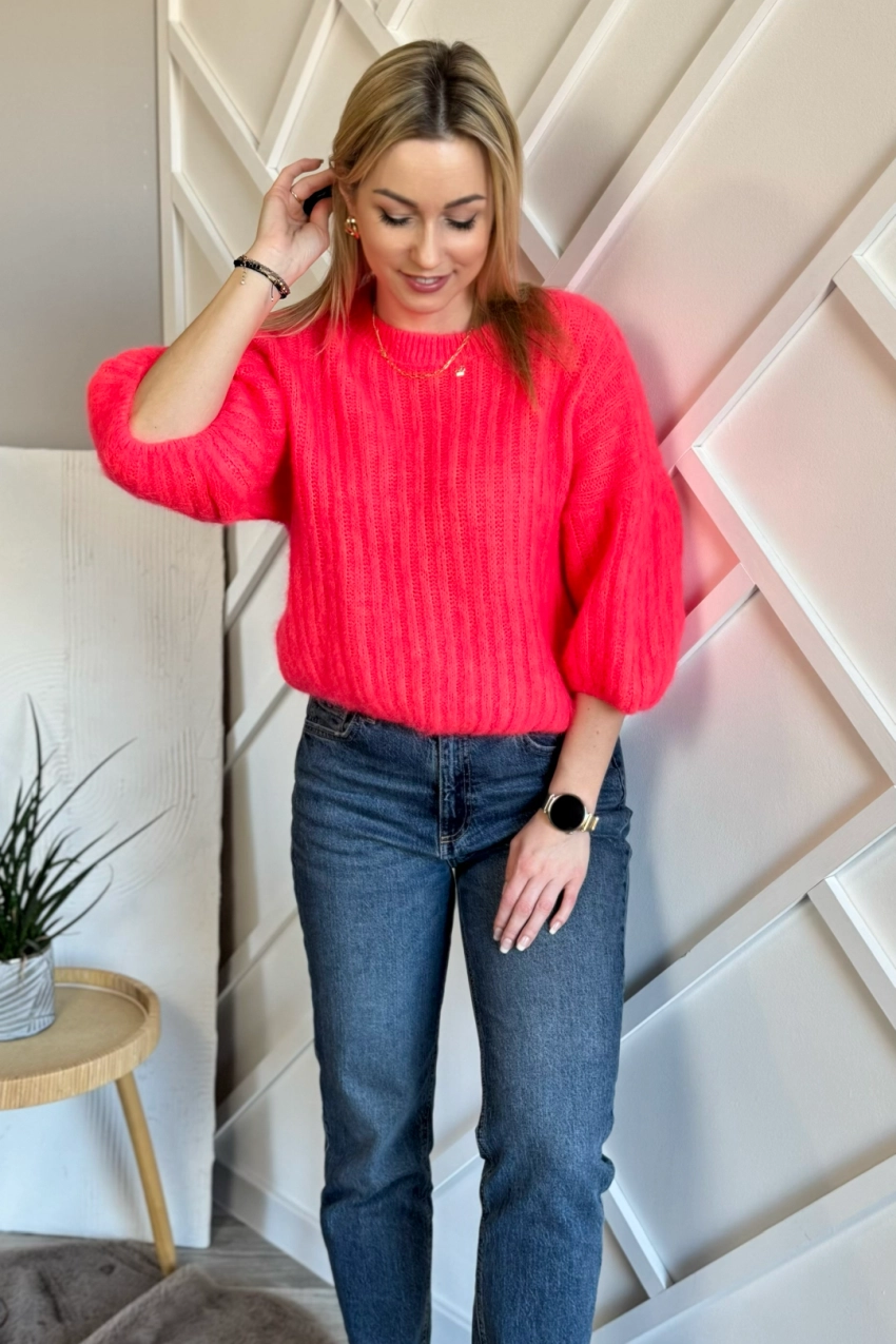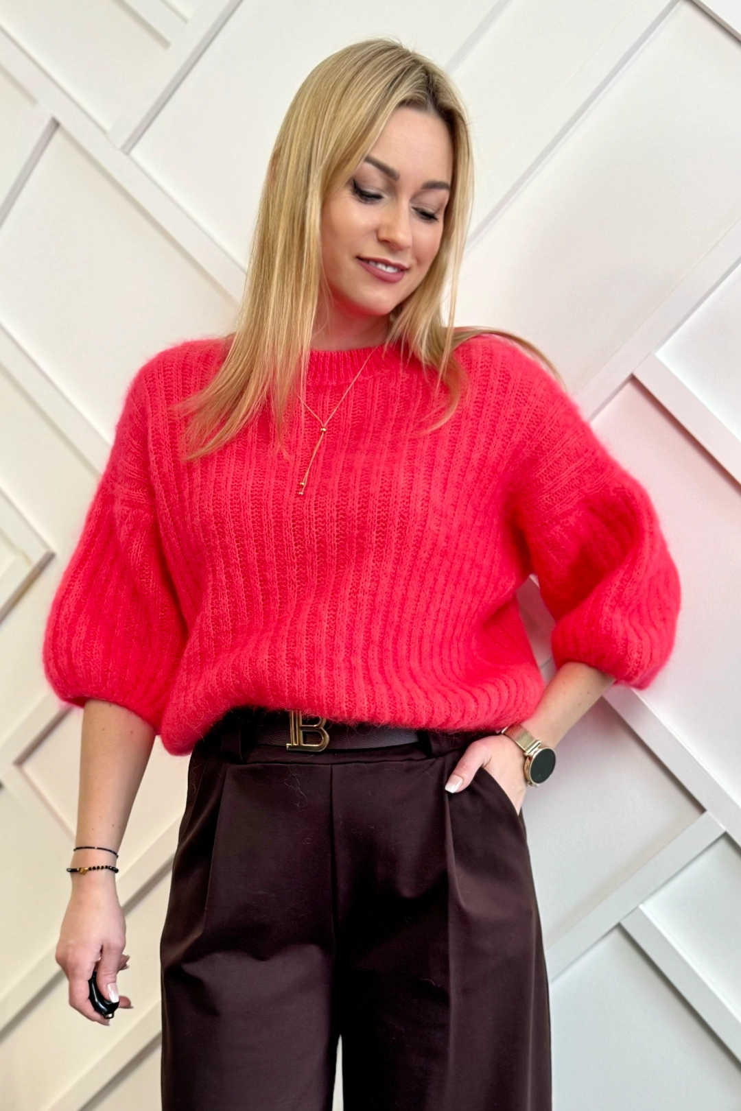 Koralowy sweter z moheru na krótki rękaw.  Fason oversize, delikatne ściągacze na rękawach oraz na dole. Ten  moherowy sweterek to połączenie klasyki i subtelnej lekkości. Przede wszystkim wykonany z miękkiego moheru, dzięki czemu zapewnia komfort noszenia. Ponadto włókna moherowe mają właściwości termiczne,  dobrze pochłaniają wilgoć, tkanina pozostaje chłodna w kontakcie ze skórą. Sweterek jest delikatny jak chmurka, prawie go nie czuć na ciele.