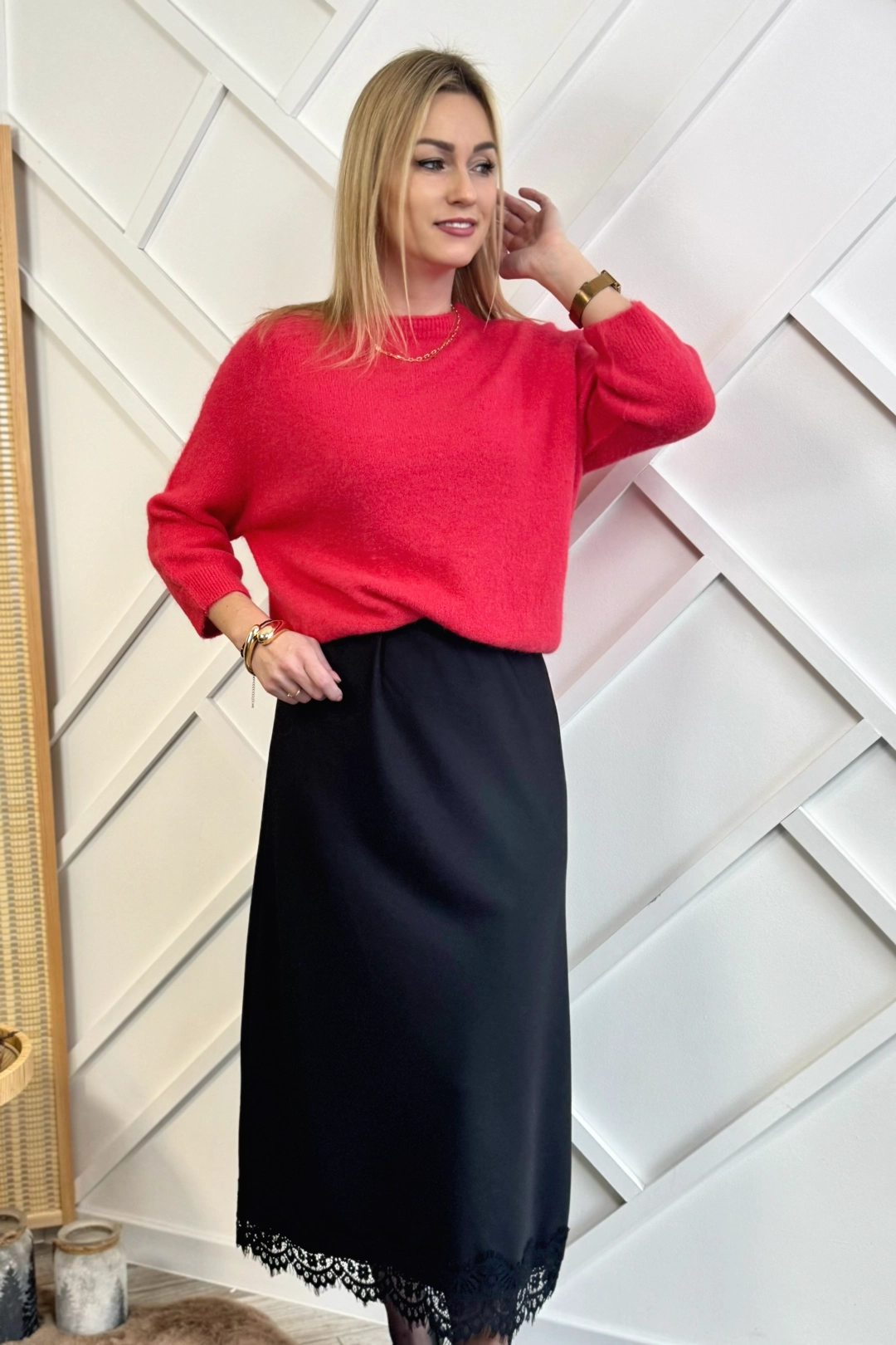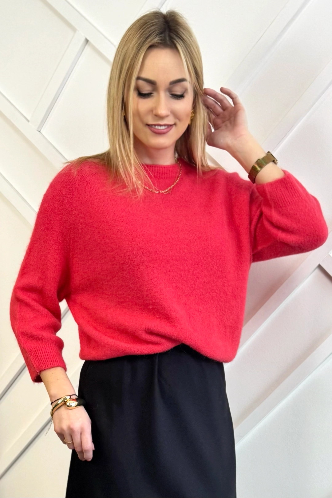 Sweter damski z alpaki koralowy czerwony to idealny wybór na chłodniejsze dni. Wykonany z wysokiej jakości mieszanki alpaki i wełny, zapewnia komfort termiczny, jednocześnie pozostając lekki i przyjemny w dotyku.