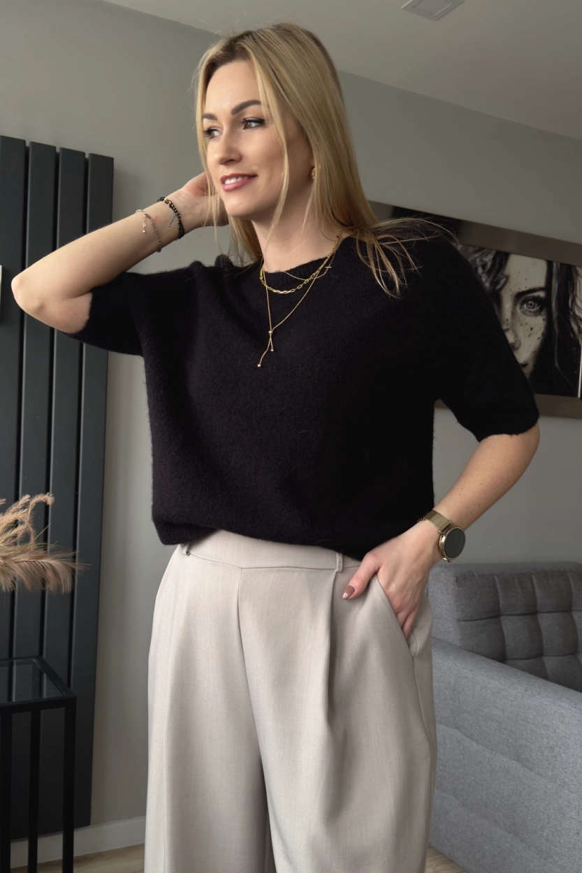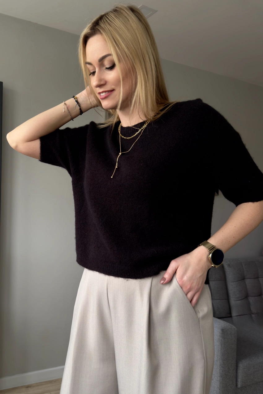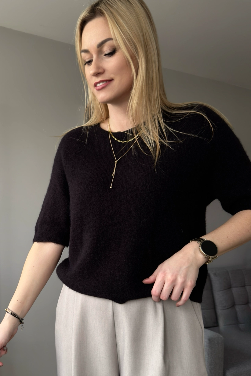 Sweter z alpaki krótki rękaw czarny to idealny wybór dla kobiet ceniących jakość, komfort i ponadczasową elegancję. Dzięki niemu stworzysz stylizacje zarówno klasyczne, jak i casualowe.