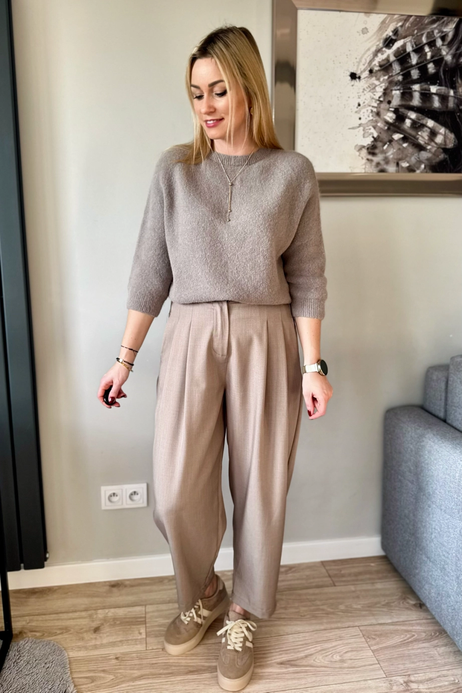 Sweter z alpaki rękaw 3/4 taupe